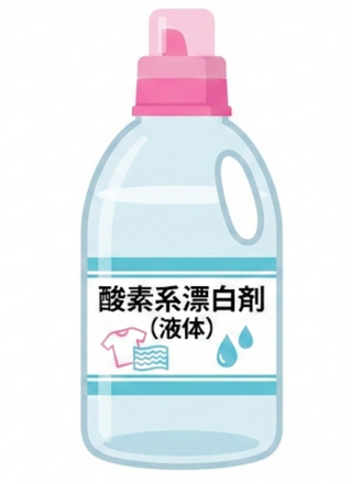 - 酸素系(液体):マイルド、デリケート素材にも使用可能だが洗濯表示を必ず確認